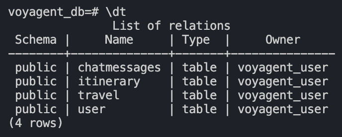 Travel, Itinerary, ChatMessages 테이블을 만들 건데, 각각 relationship이 있기 때문에 유의해서 만들어야 한다.