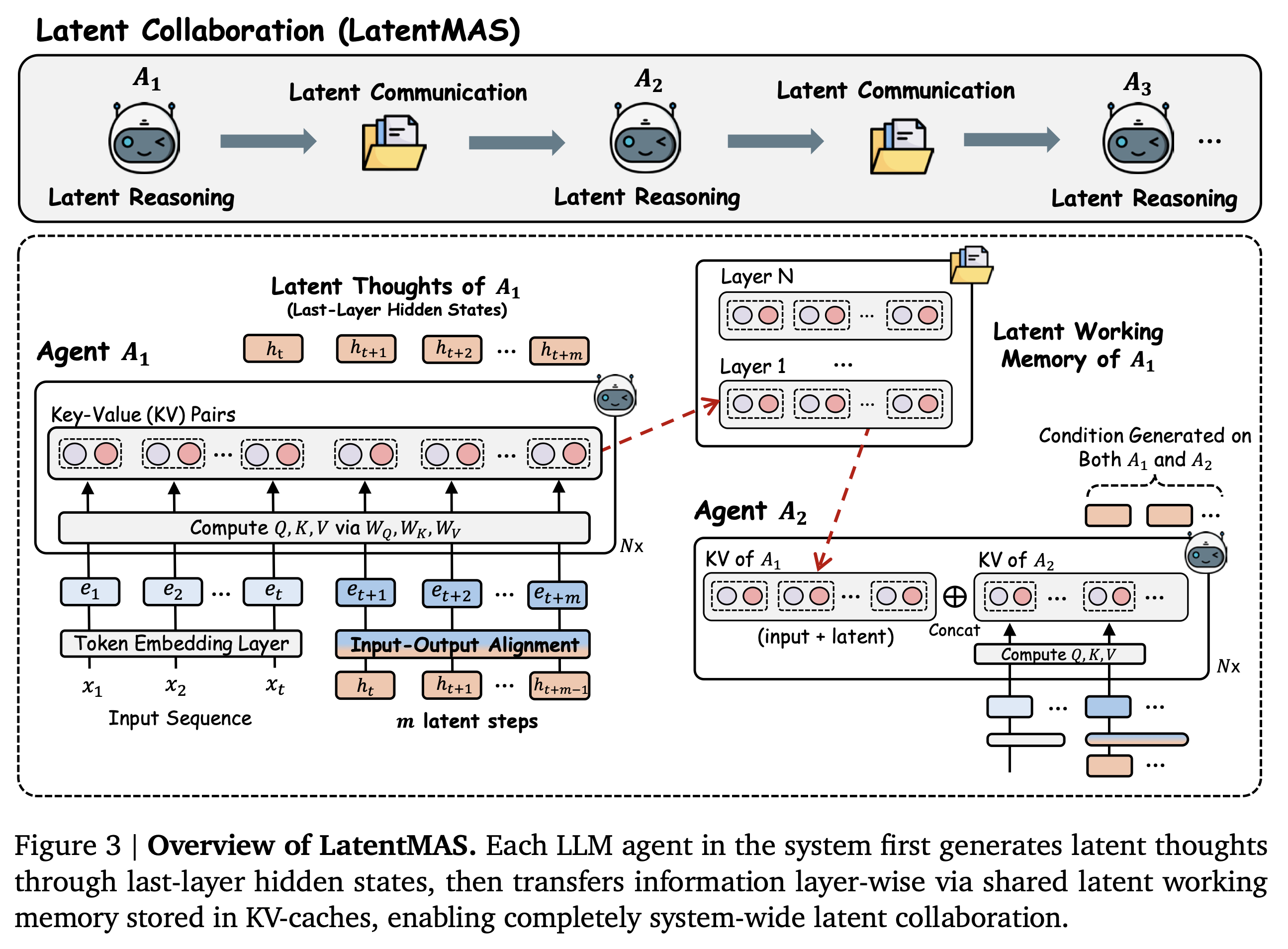 - 토큰 비용 절감: agent 간 정보를 텍스트가 아닌 KV 기반 latent working memory로 전달