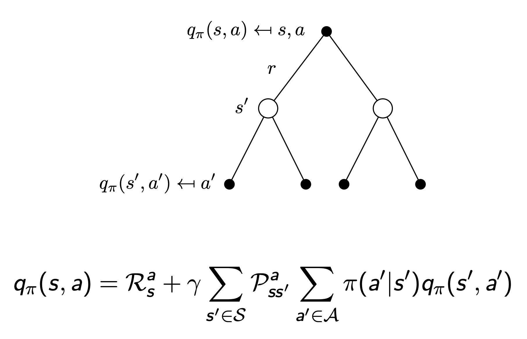 - 즉시 받을 수 있는 reward와 다음 state에서의 reward의 합으로 표현 가능