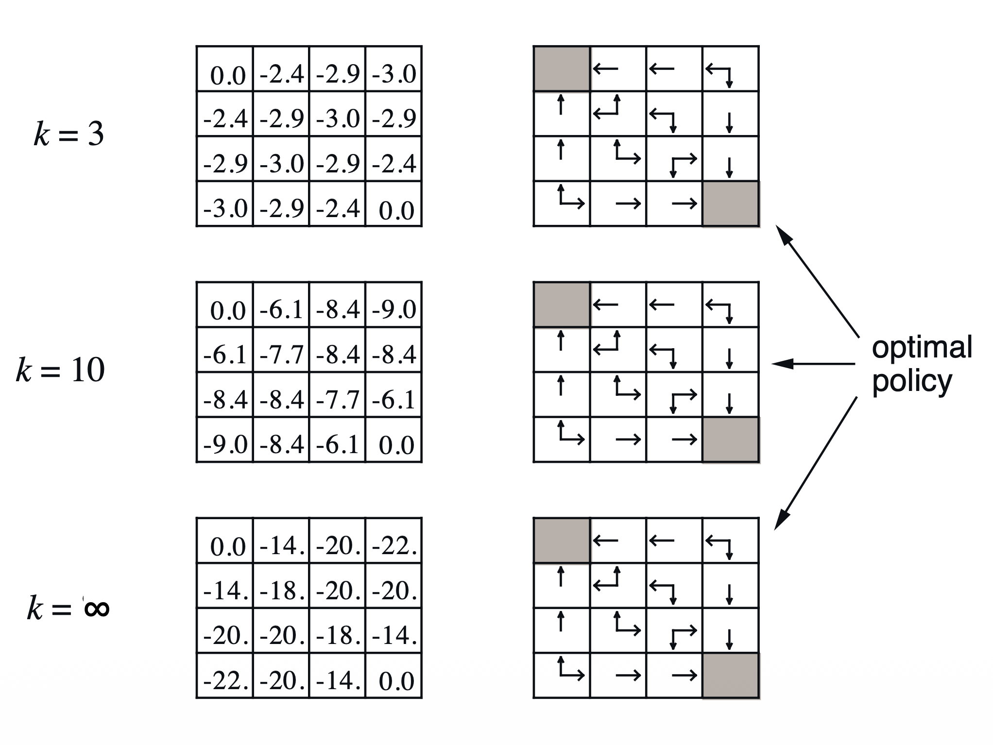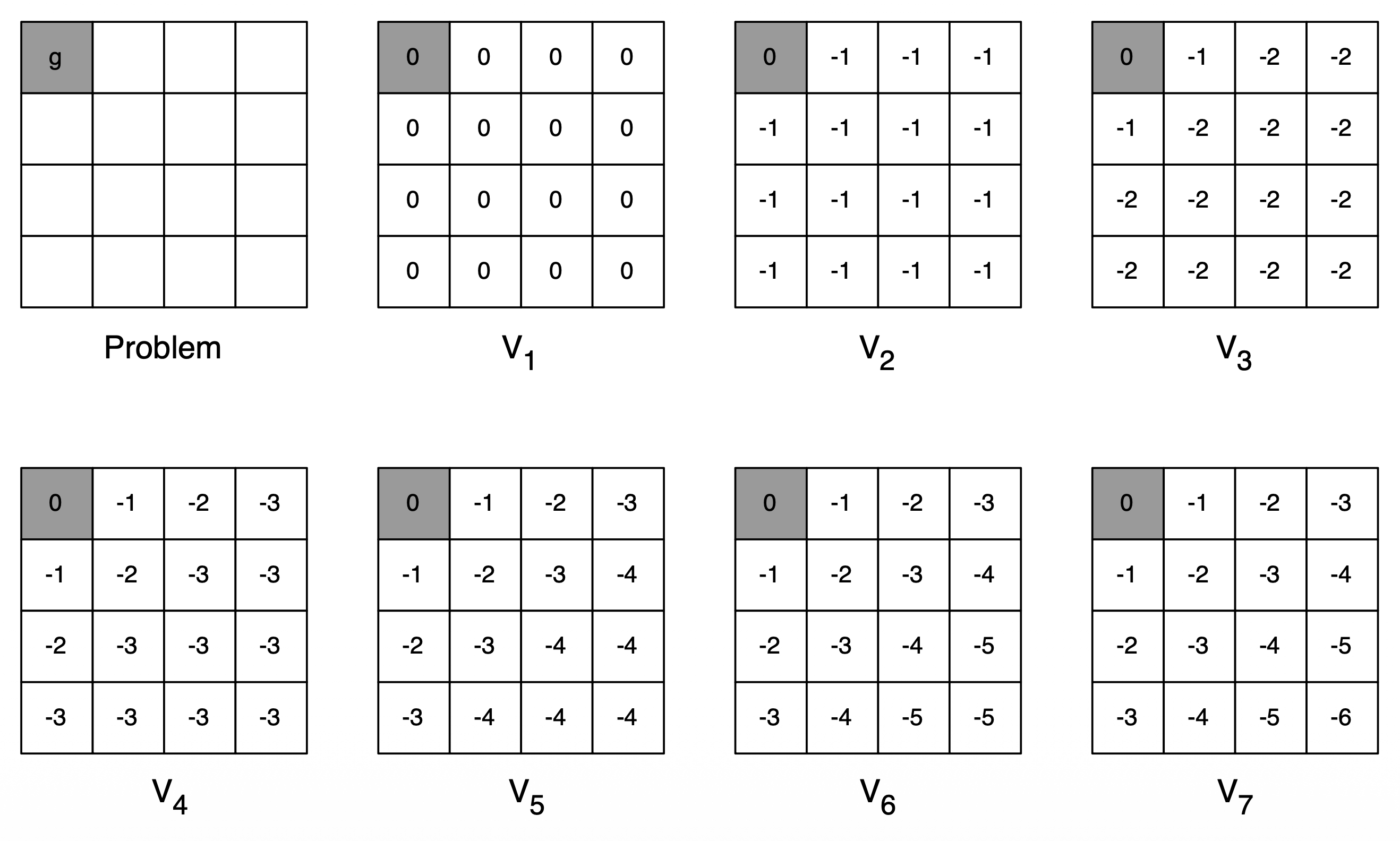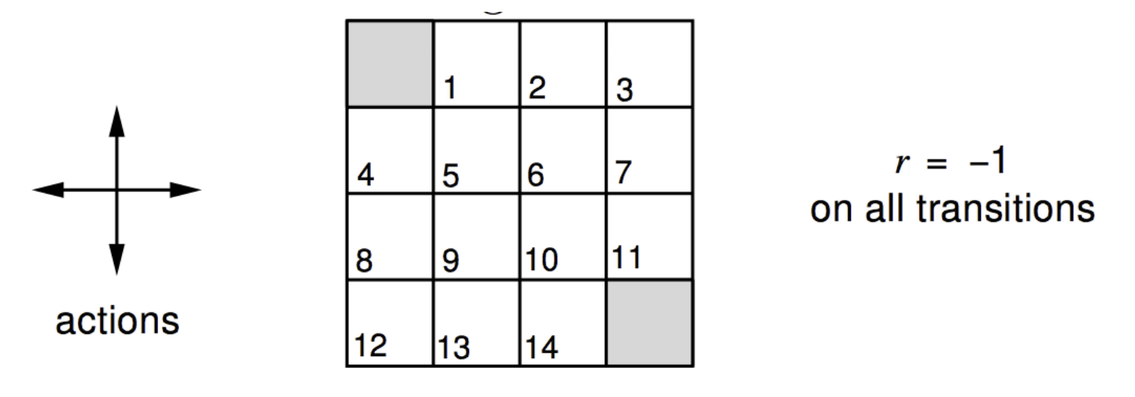 - terminal state에 도달하기 전까지 모든 transition의 reward는 -1