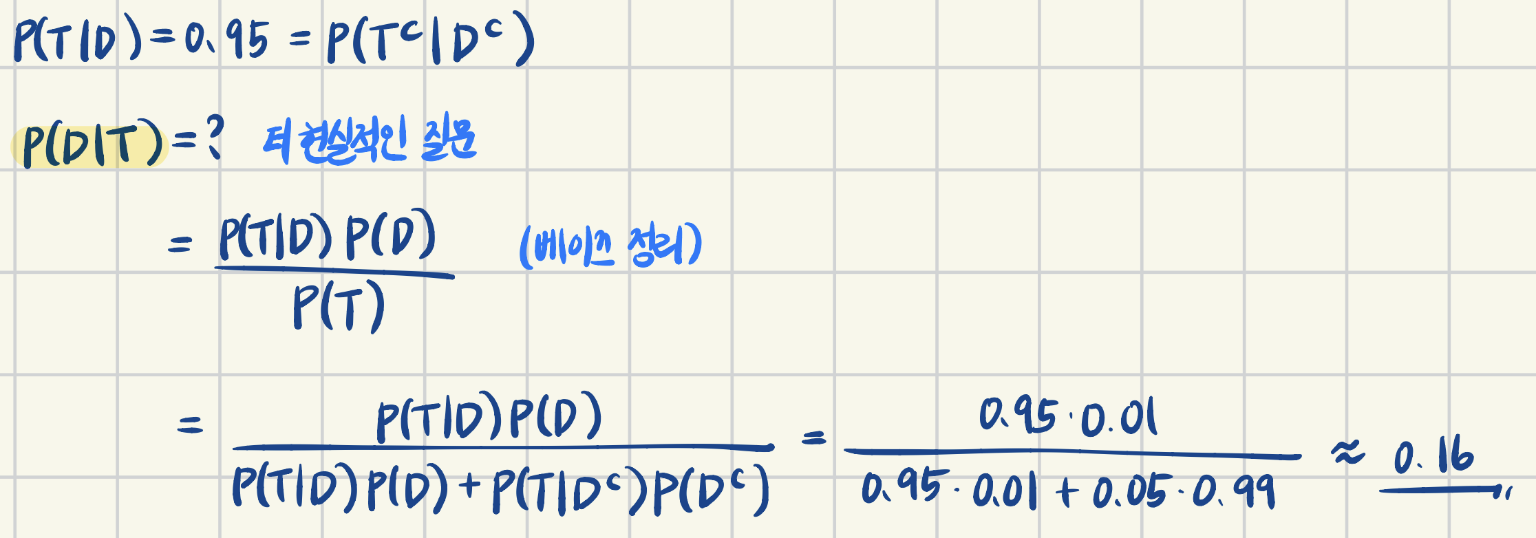 - $D$: patient has disease
