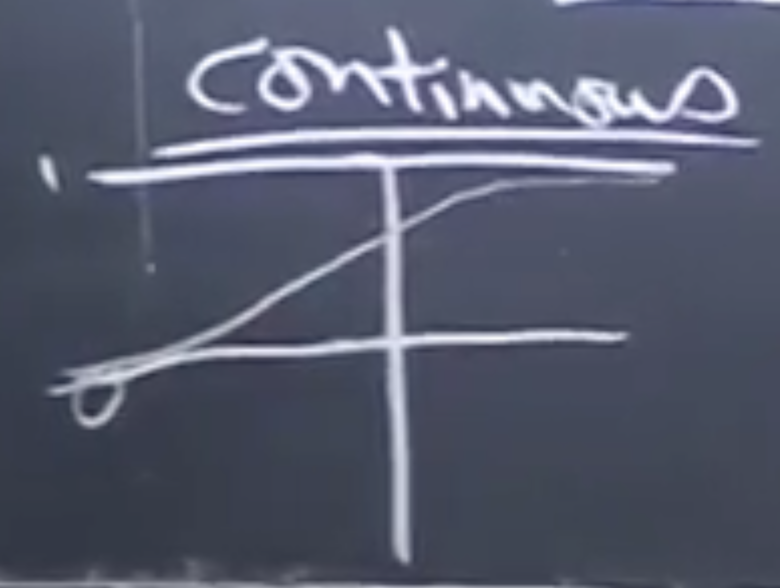 - discrete: possible values $a_1, a_2, \dots, a_n$ or $a_1, a_2, \dots$ (유한하거나 무한한 정수값을 가지는 것)