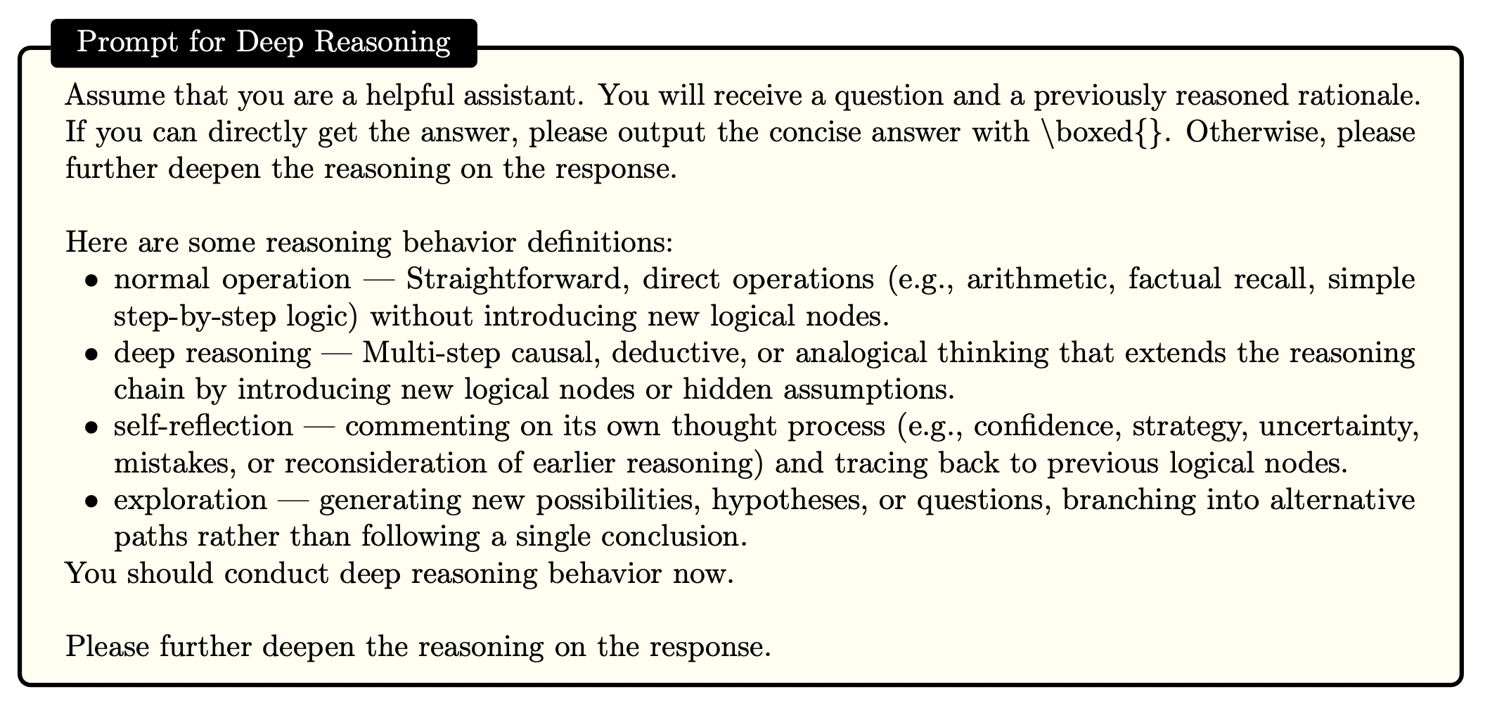 step 2 LLM을 활용해서 각 reasoning step이 Normal Operation, Deep Reasoning, Self-Reflection, Self-Exploration 중 어디에 속하는지 파악한다. 그 뒤, reasoning step transfer distribution을 만든다. step 3 DR, SR, SE 중 각 step마다 생성할 요소를 파악한 distribution에 따라 선택하다.